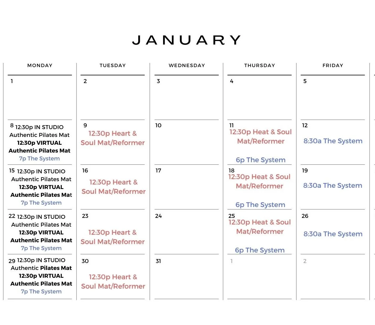 January Schedule